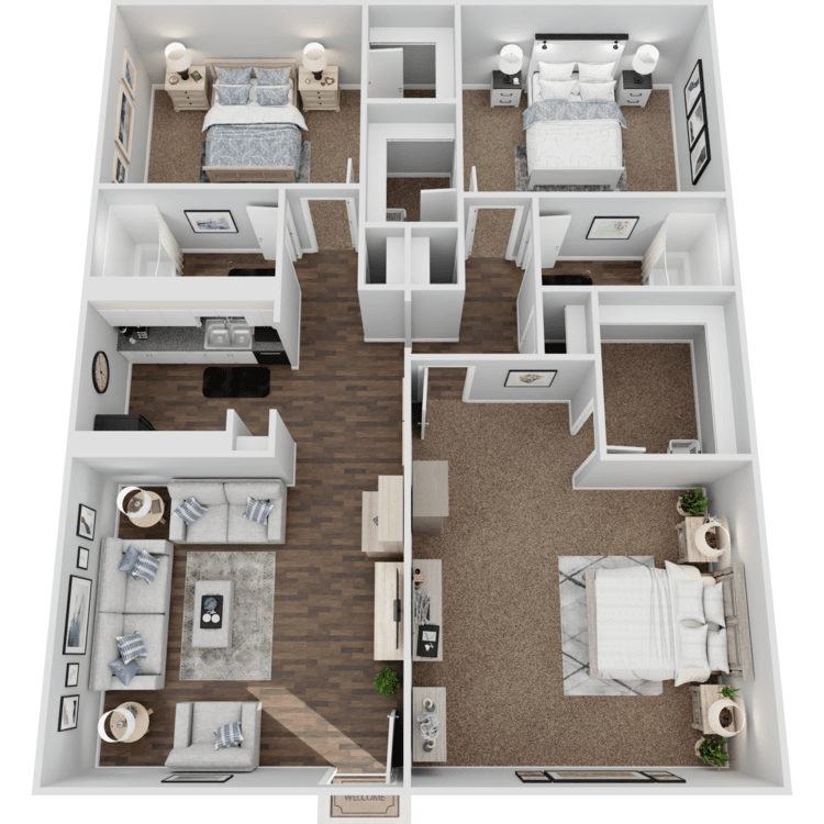 Select a floor plan or bedroom count to view those units on the overhead view on the site map. If you need assistance finding a unit in a specific location please call us at 817-265-9938 TTY: 711.