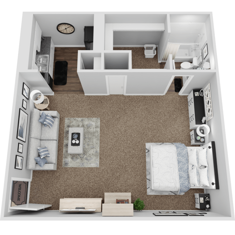 We offer a wide variety of floor plans, including studio, one-, two-, and three-bedroom apartments and townhomes for rent. Our premium residences include walk-in closets and ceiling fans. Select floor plans have stainless steel and black appliances, wood-style flooring, patios, washer and dryer connections, and classic wood molding. Waterdance apartment homes offer an environment designed for deep tranquility and lasting contentment.